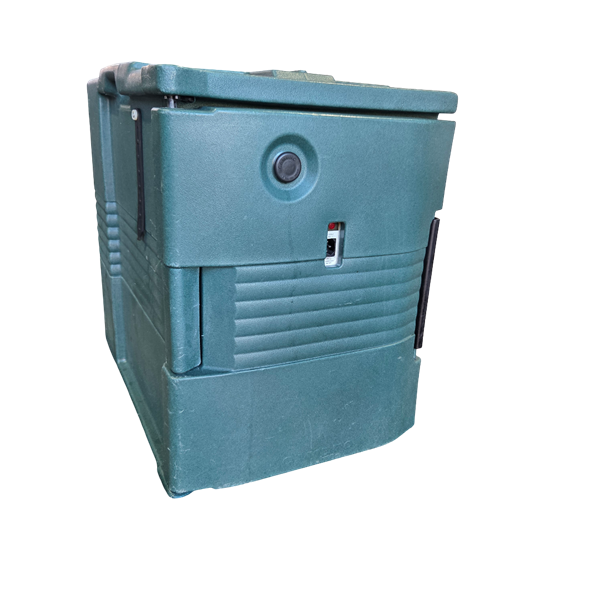 Used for keeping food pans warm. Can hold 4 - 4" deep chafer pans or 6 - 2" deep pans. Has an electric heating element and uses a standard plug.