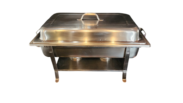 Standard 8qt chafing dish. Fits most standard disposable pans. These are the most rented version of chafers we carry. Can fit full or half pans, either 2" or 4"